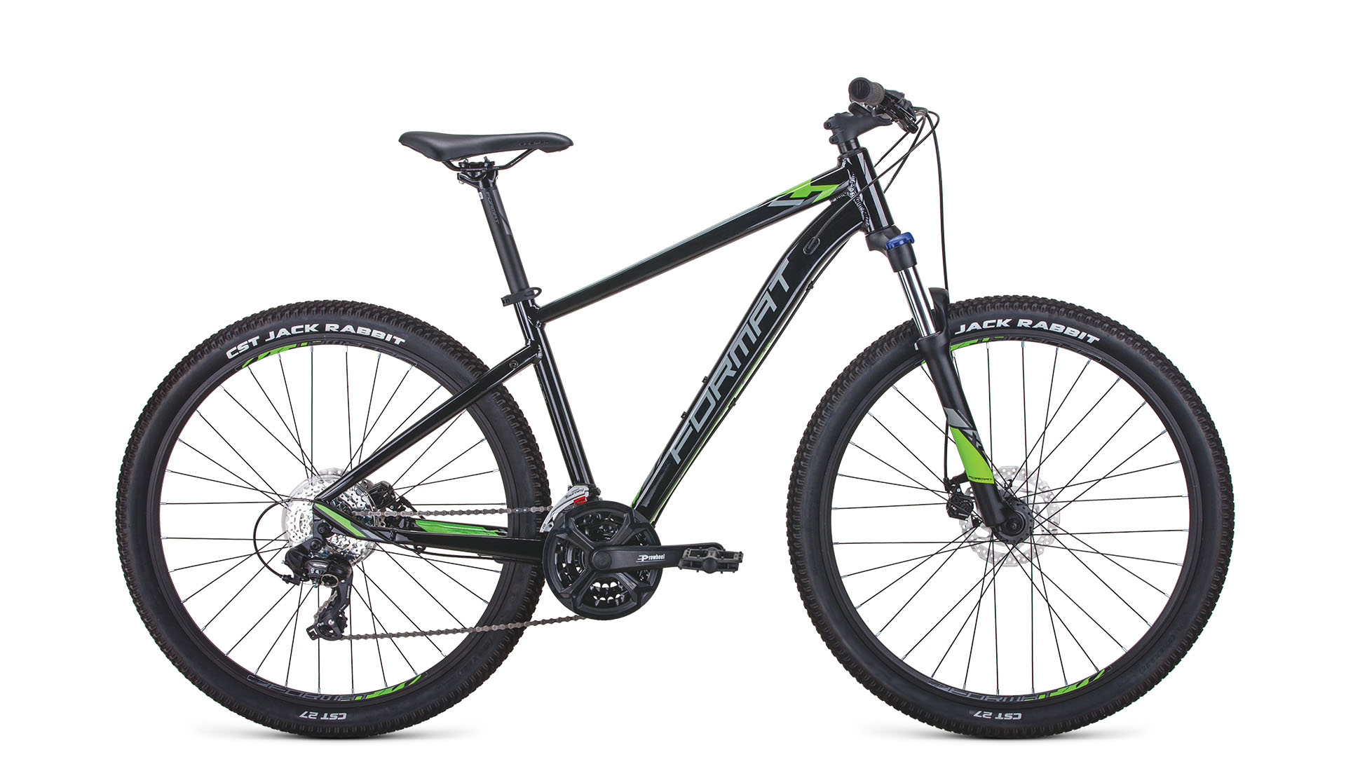 Бренд FORMAT Модель 1415 27,5 Год 2021 Ход вилки, мм 100 Вилка/регулировки Format 688 27.5" 100мм, пружинная, 9x100мм. Регулировка предварительной нагрузки Обода Format Double Wall, 32Н, Schrader | Алюминиевый двустеночный Покрышки CST Jack Rabbit, 27.5x2.25" | Cталь Грипсы Format Lock-On Тормоз Shimano M805, 160/160мм Шифтеры Shimano EF500 Переключатель передний Shimano Tourney TX800 Переключатель задний Shimano Tourney TY300 Кассета Sun Race CSM40, 12-34T, 7-Speed | 7: 12-34T Цепь KMC Z7 Каретка Kenli KL-08A, картриджная Шатуны Prowheel TC-CQ02, 42x32x22T, 170мм (S), 175мм (M-L) | 3: 42x32x22T Количество скоростей 21 Руль Format Trekking, ширина: 680мм (S), 720мм (M-L), подъём: 20мм, диаметр: 31.8мм Рулевая колонка Kenli, полуинтегрированная, ZS 44/28.6|ZS 44/30.0 Вынос Format Trekking, угол: 6°, диаметр: 31.8мм, длина: 75мм Седло Format Trekking Подседельный штырь Format, диаметр: 30.4мм, длина: 350мм Педали Пластиковые Втулка передняя Format, пром. подшипники, 9x100мм, эксцентрик Втулка задняя Format, пром. подшипники, 10x135мм, эксцентрик -